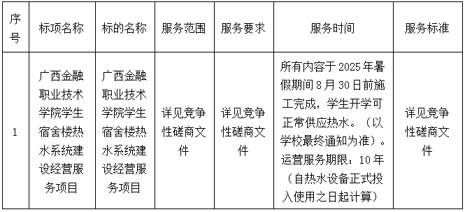 二、項(xiàng)目名稱:廣西金融職業(yè)技術(shù)學(xué)院學(xué)生宿舍樓熱水系統(tǒng)建設(shè)經(jīng)營服務(wù)項(xiàng)目